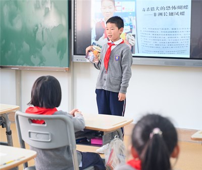 家长们听完课后饶有兴致地参加了班级阅读分享会:二年级重在回顾共读历程,孩子们分享以读促写的成果;三四五年级分享自己的阅读收获(提供读书笔记、阅读感受、阅读书目集锦及阅读推荐、阅读思辨、阅读研究、阅读的故事等形式给学生选择)。