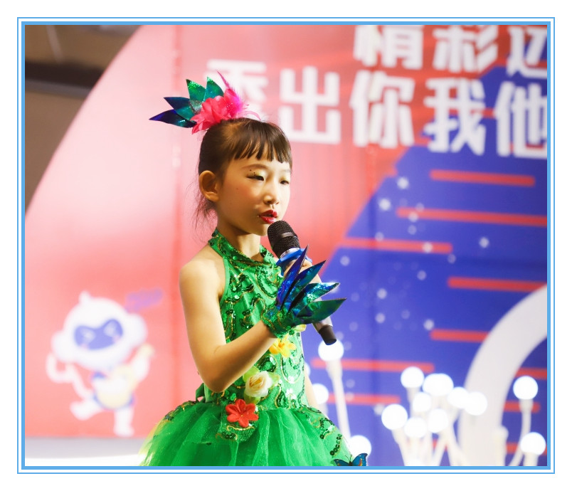 看!这次六·一全员素质展中担任主持人的她是那么的从容淡定,自信大方。