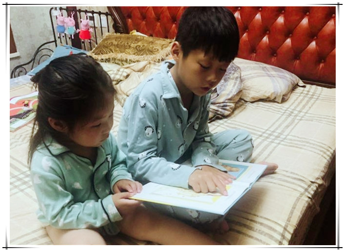他对妹妹的态度也有很大变化。以前他的东西妹妹是绝对不能碰的,后来开始想着照顾妹妹了。上学期老师给他发奖,他选了一个小小的绘本,老师问他为什么选这个,他说要拿回家送给妹妹。班主任蒋老师当场就表扬了他,还及时把这个惊喜告诉了我。现在呢,他正逐渐成长为一个阳光、担当的暖男哥哥,他自己会主动带妹妹,帮妹妹穿鞋、修玩具、给妹妹讲绘本故事……
