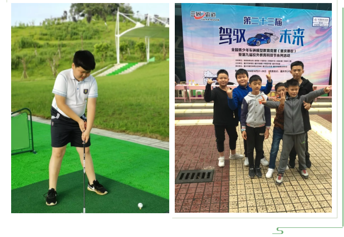 在丰富的校园生活中,徐圣哲也积极表现。在高尔夫课上,认真矫正自己的站姿,争取打出完美的一球;