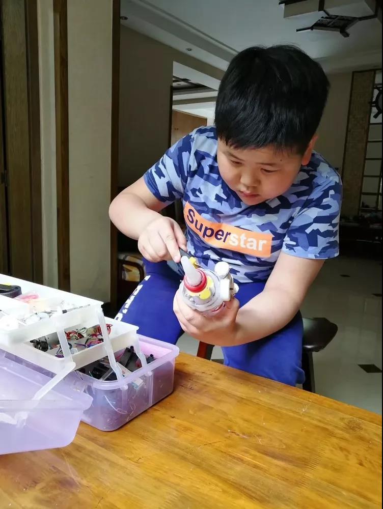 徐圣哲同学的动手能力特别强,制作小发明,做义工......在家庭生活中,他会经常帮爸妈做一些力所能及的家务活,擦桌子、洗碗一个不落下,是一个生活小能手呢!