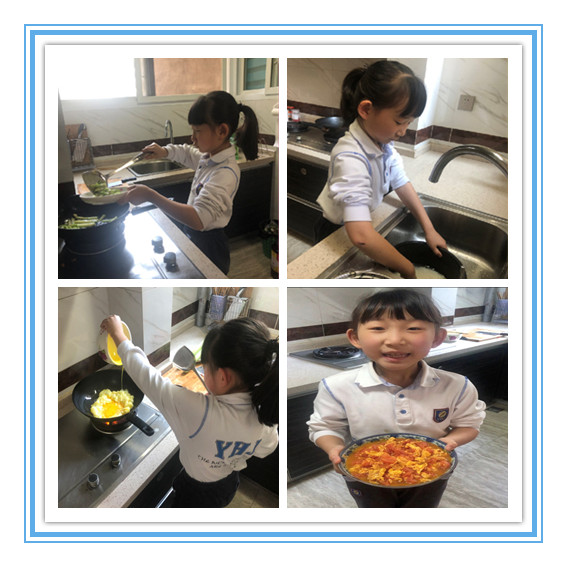 2、母亲节那天,我独自完成了我们家的午餐。看着爸爸、妈妈把饭菜都吃得光光的,我发现,劳动原来是一件幸福的事。
