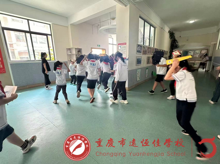 同学们反应敏捷,训练有素。大家弯着腰、猫着步,用手帕、毛巾等捂住口鼻,沿着学校指定的疏散通道快速前进,有序撤离到学校操场的安全地带。